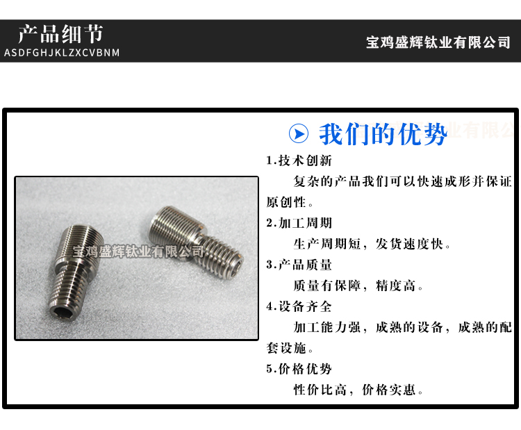 寶雞盛輝鈦業有限公司是一家主要從事鈦及鈦合金棒,鈦環,鈦法蘭及鈦合金板材的高新技術企業,公司提供鈦環,鈦合金棒批發,鈦環的生產工藝服務,以人為本,質量取勝為宗旨:18791863990,18740375975