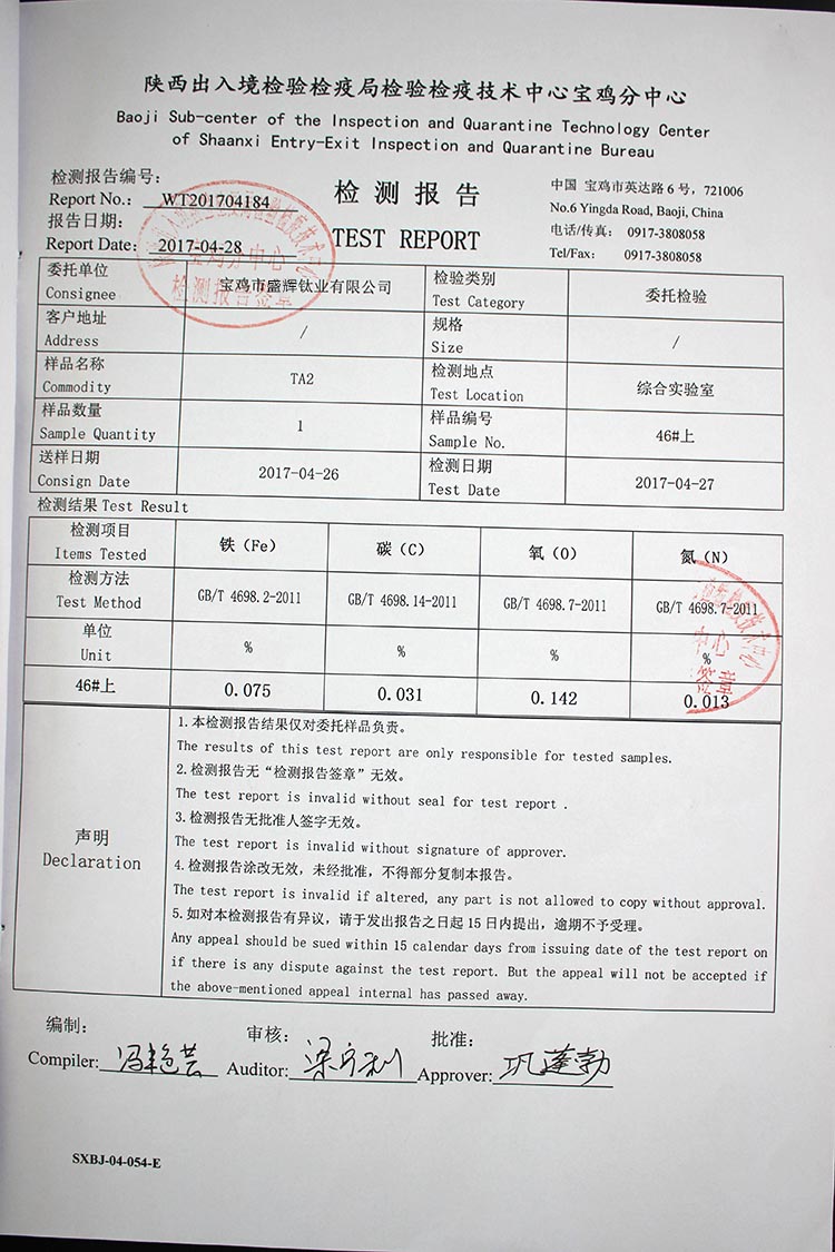 SH-20170426-41#TA2上部 化學(xué)成分