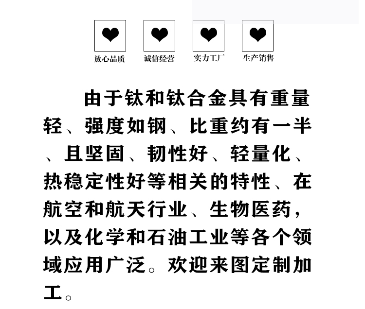 寶雞盛輝鈦業(yè)有限公司是一家主要從事鈦及鈦合金棒,鈦環(huán),鈦法蘭及鈦合金板材的高新技術(shù)企業(yè),公司提供鈦環(huán),鈦合金棒批發(fā),鈦環(huán)的生產(chǎn)工藝服務,以人為本,質(zhì)量取勝為宗旨:18791863990,18740375975