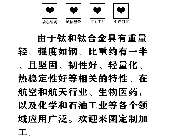寶雞盛輝鈦業(yè)有限公司是一家主要從事鈦及鈦合金棒,鈦環(huán),鈦法蘭及鈦合金板材的高新技術(shù)企業(yè),公司提供鈦環(huán),鈦合金棒批發(fā),鈦環(huán)的生產(chǎn)工藝服務(wù),以人為本,質(zhì)量取勝為宗旨:18791863990,18740375975