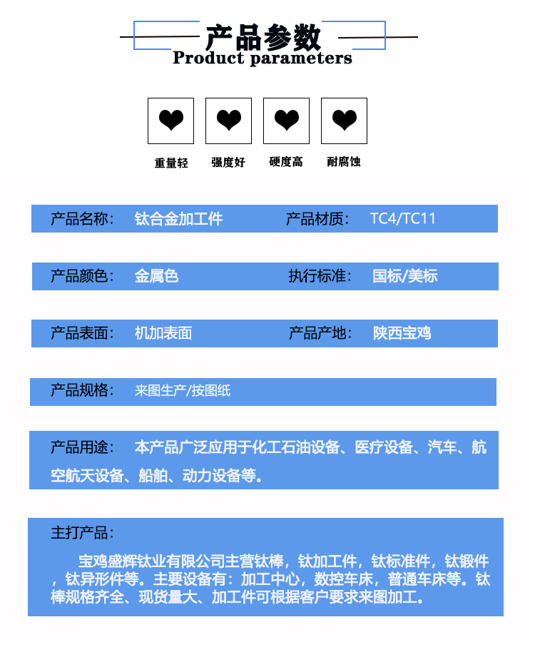 寶雞盛輝鈦業(yè)有限公司是一家主要從事鈦及鈦合金棒,鈦環(huán),鈦法蘭及鈦合金板材的高新技術(shù)企業(yè),公司提供鈦環(huán),鈦合金棒批發(fā),鈦環(huán)的生產(chǎn)工藝服務(wù),以人為本,質(zhì)量取勝為宗旨:18791863990,18740375975