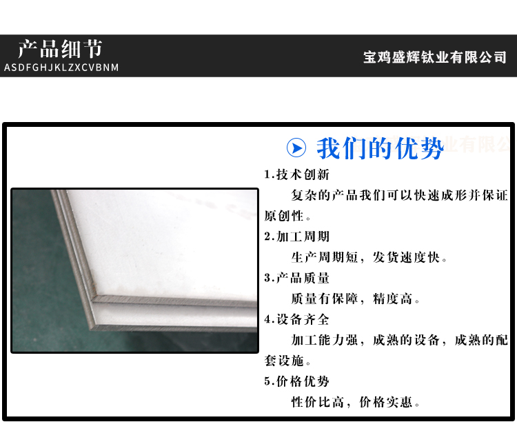寶雞盛輝鈦業有限公司是一家主要從事鈦及鈦合金棒,鈦環,鈦法蘭及鈦合金板材的高新技術企業,公司提供鈦環,鈦合金棒批發,鈦環的生產工藝服務,以人為本,質量取勝為宗旨:18791863990,18740375975