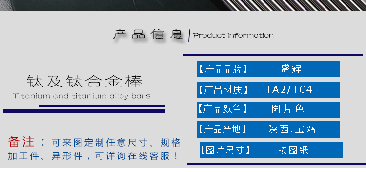 從細節出發,站在專業的角度,始終如一堅守品質的最終使用價值,產品和服務同時送達是盛輝鈦業對客戶的承諾。寶雞盛輝,將以不變的摯誠,用心聆聽,貼心關懷,以至全至尊的服務,與新老客戶攜手共贏!