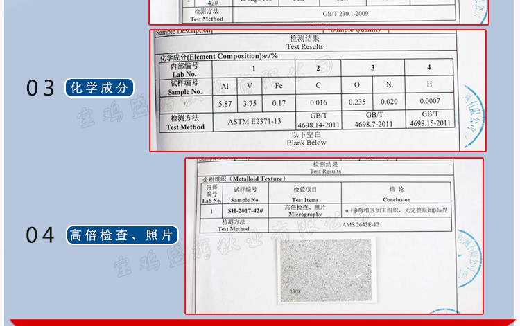 為了幫助客戶辨別鈦商品的品質優劣,確保鈦產品的來源渠道正規,本公司可提供第三方檢測機構證明書。客戶可以清楚的知道商品的的名稱、材質、批號、成分等詳細信息。確保鈦產品的優良品質。