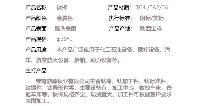 寶雞盛輝鈦業(yè)有限公司主營鈦棒,鈦加工件,鈦標(biāo)準(zhǔn)件,鈦鍛件,鈦異