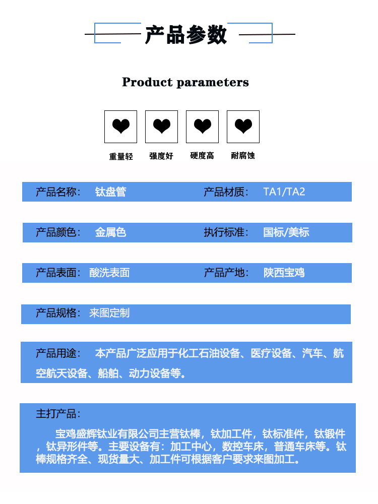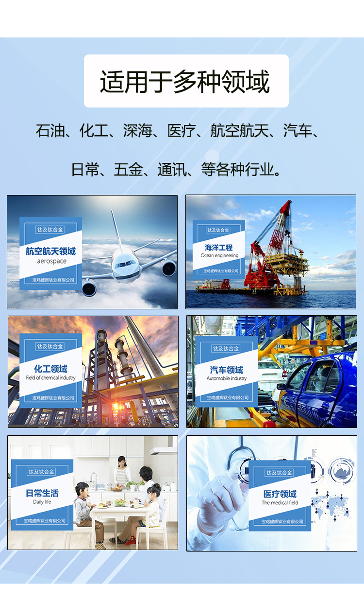 寶雞盛輝鈦業有限公司是一家主要從事鈦及鈦合金棒,鈦環,鈦法蘭及鈦合金板材的高新技術企業,公司提供鈦環,鈦合金棒批發,鈦環的生產工藝服務,以人為本,質量取勝為宗旨:18791863990,18740375975